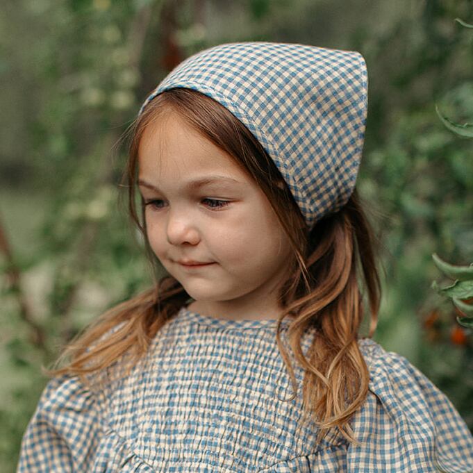 【Nellie Quats】Daphne Headscarf - Cornflower Blue & Hay Check Linen