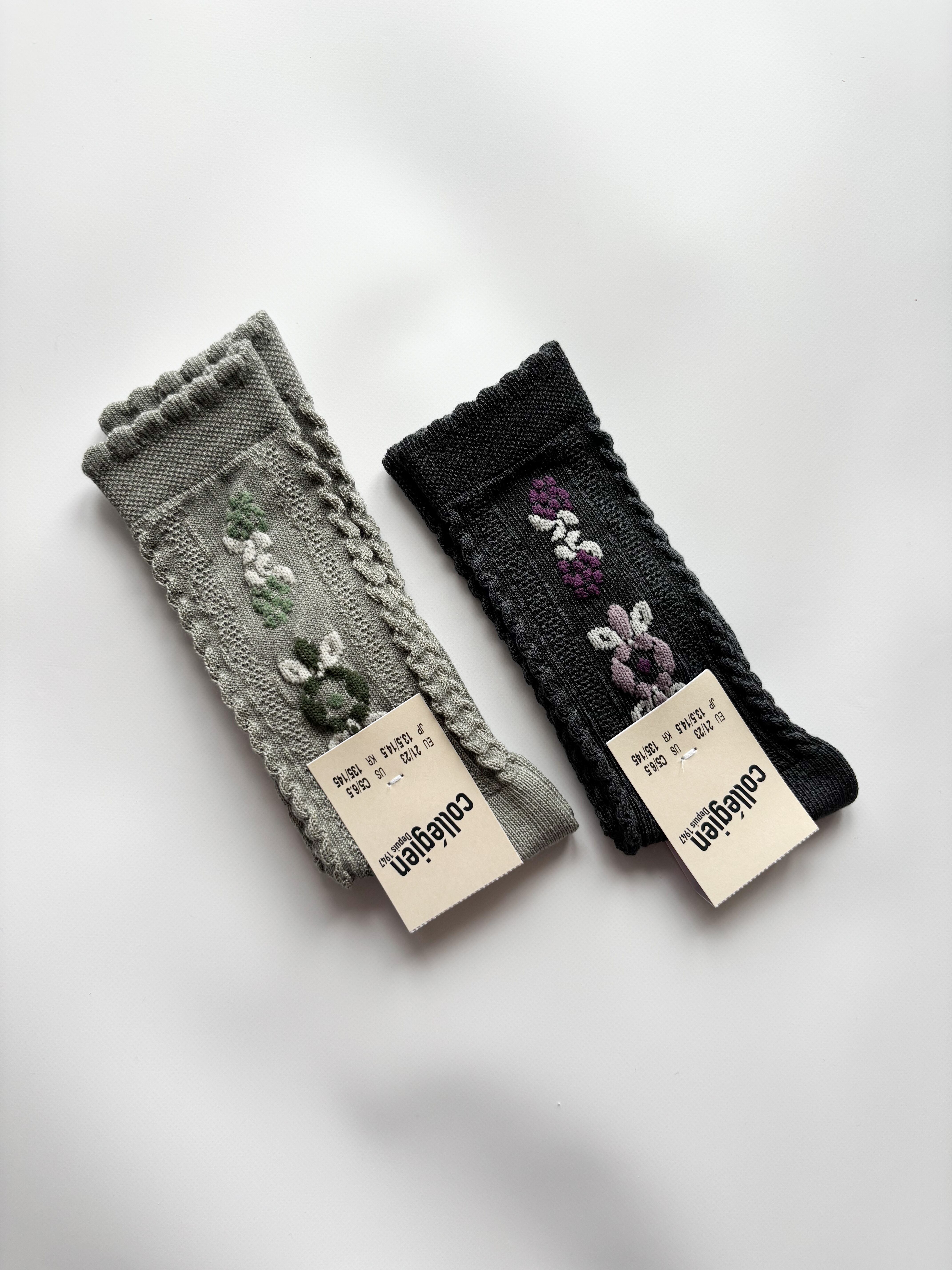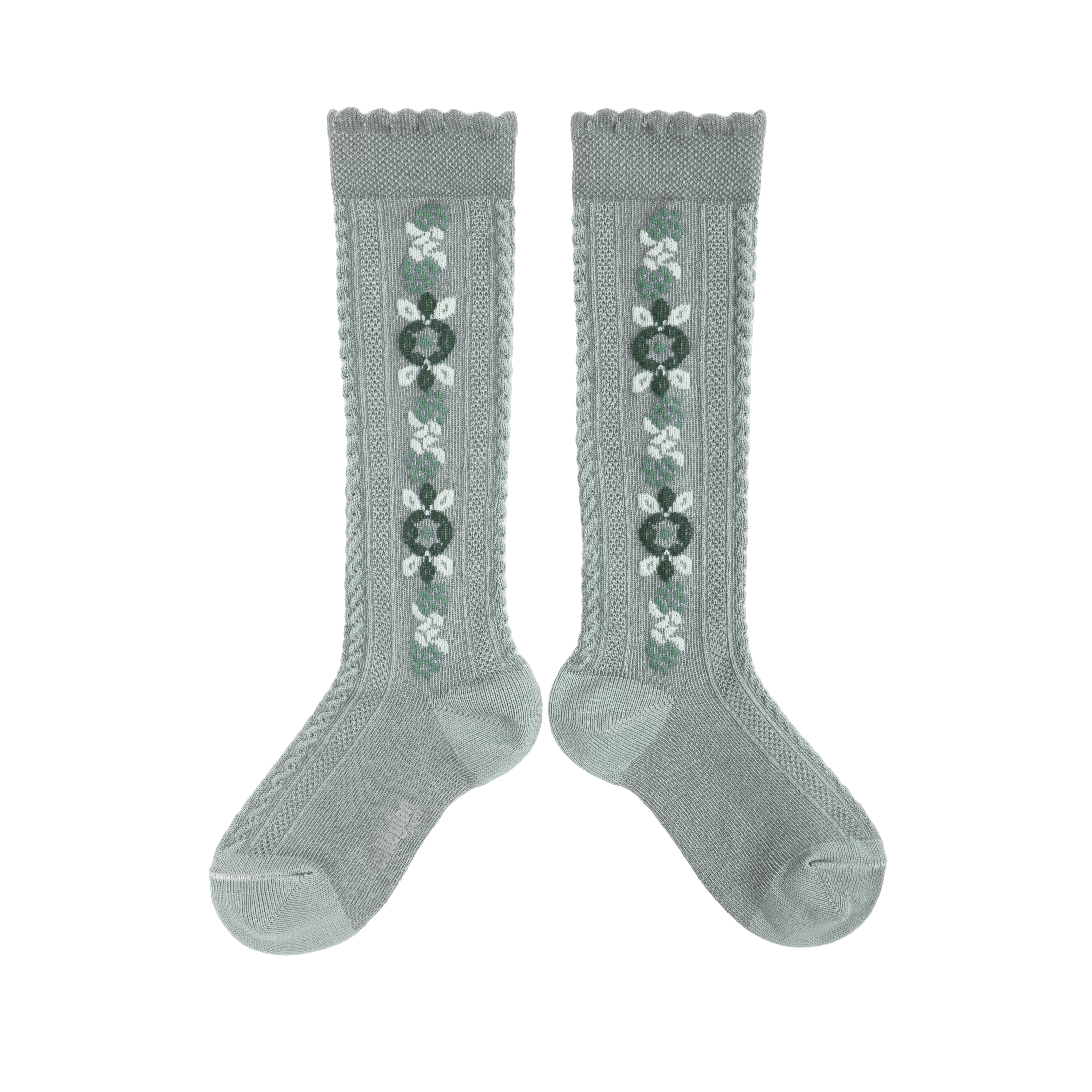 【Collégien】Dalia - Jacquard Flower Knee-high Socks