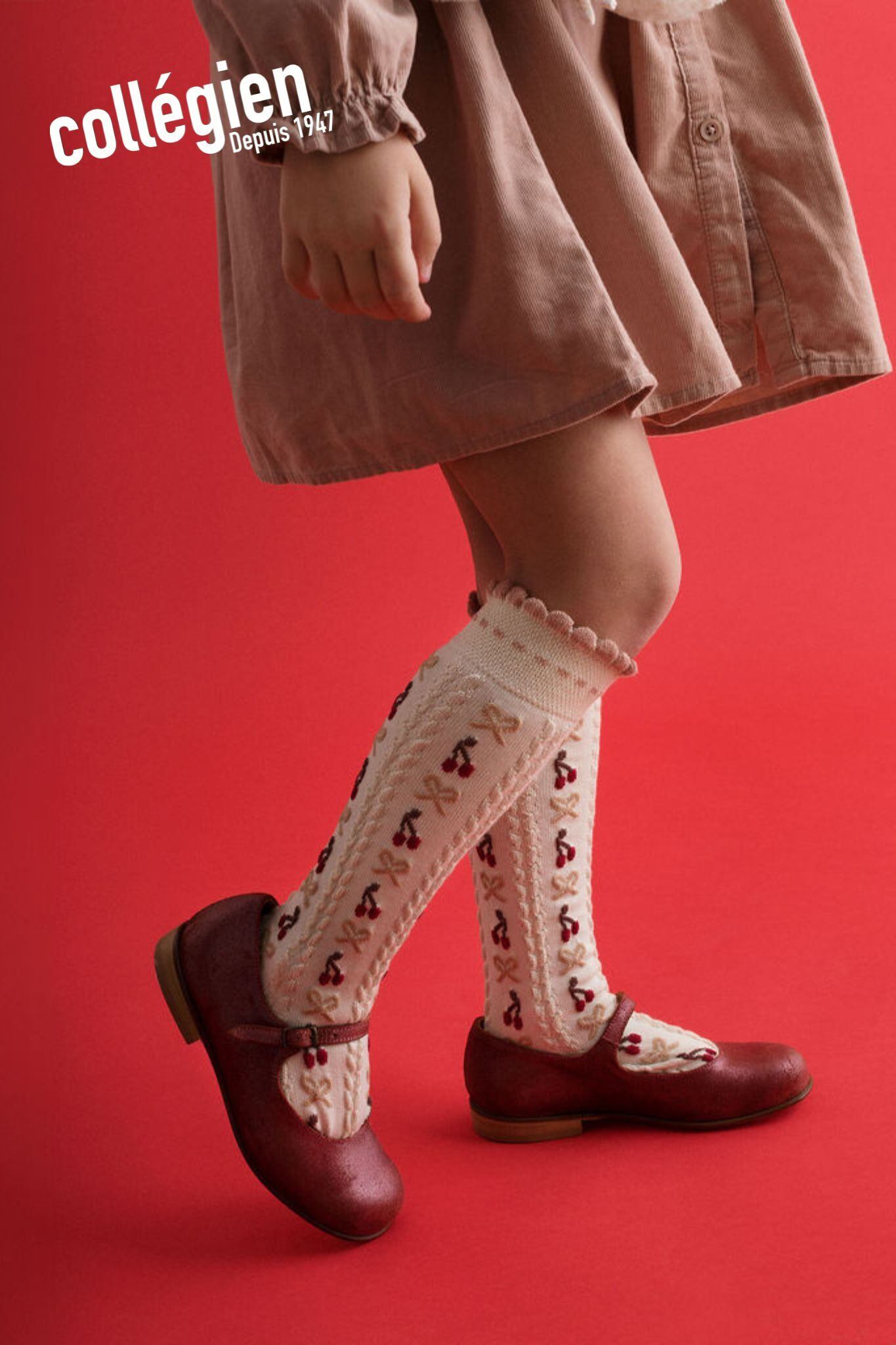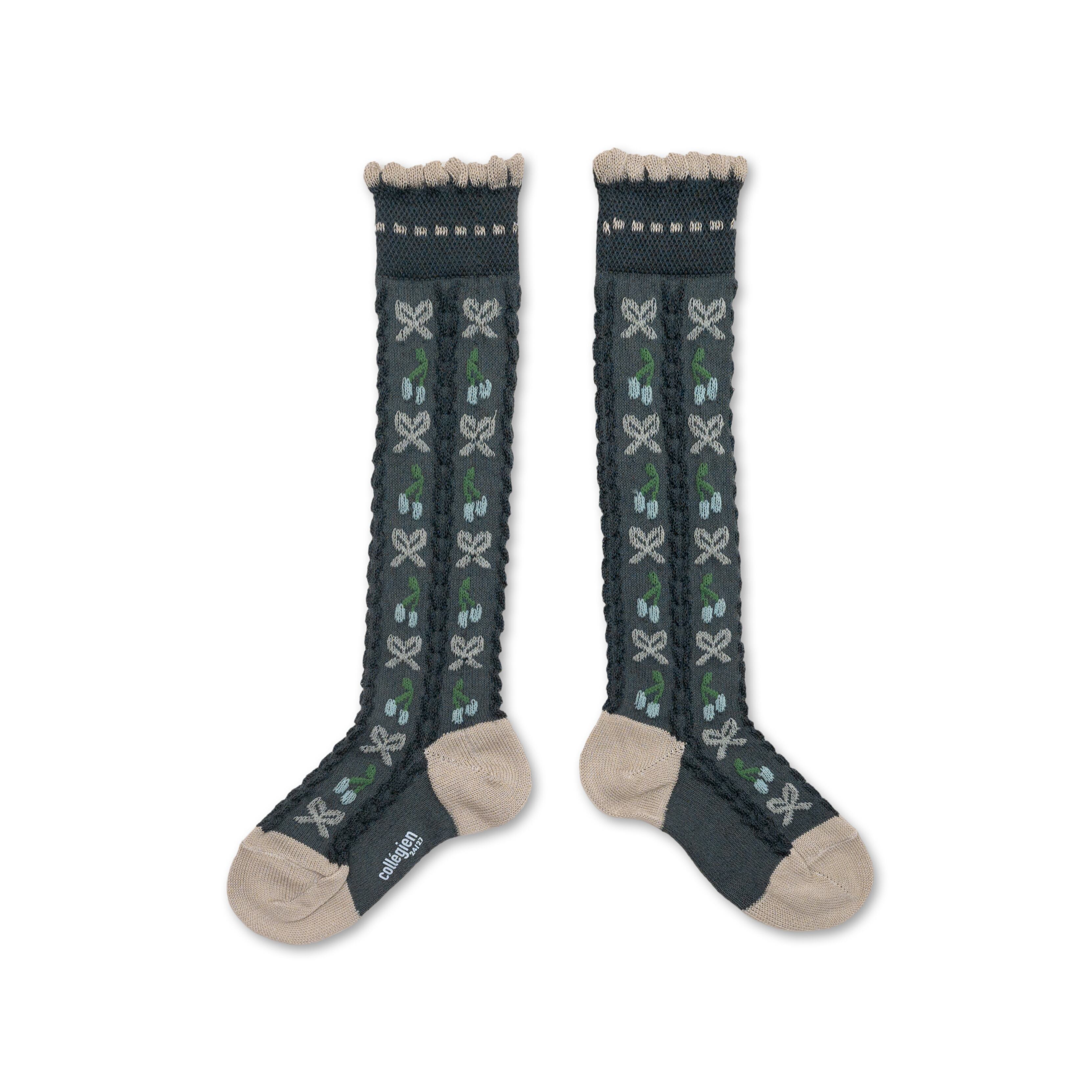 【Collégien】Cherry - High socks with cherry and bows