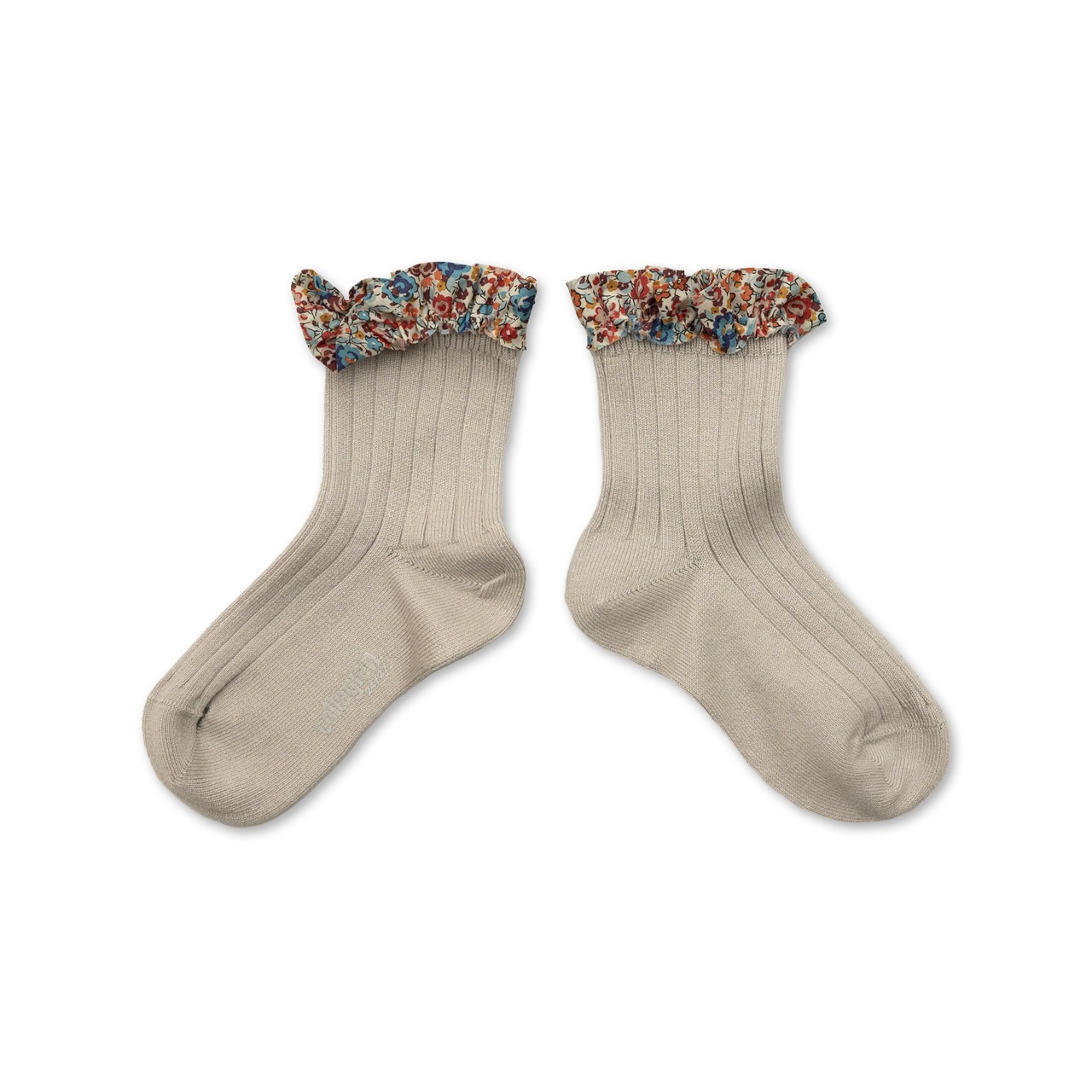 【Collégien】Charlotte - Liberty Ribbed Short Socks with Ruffle