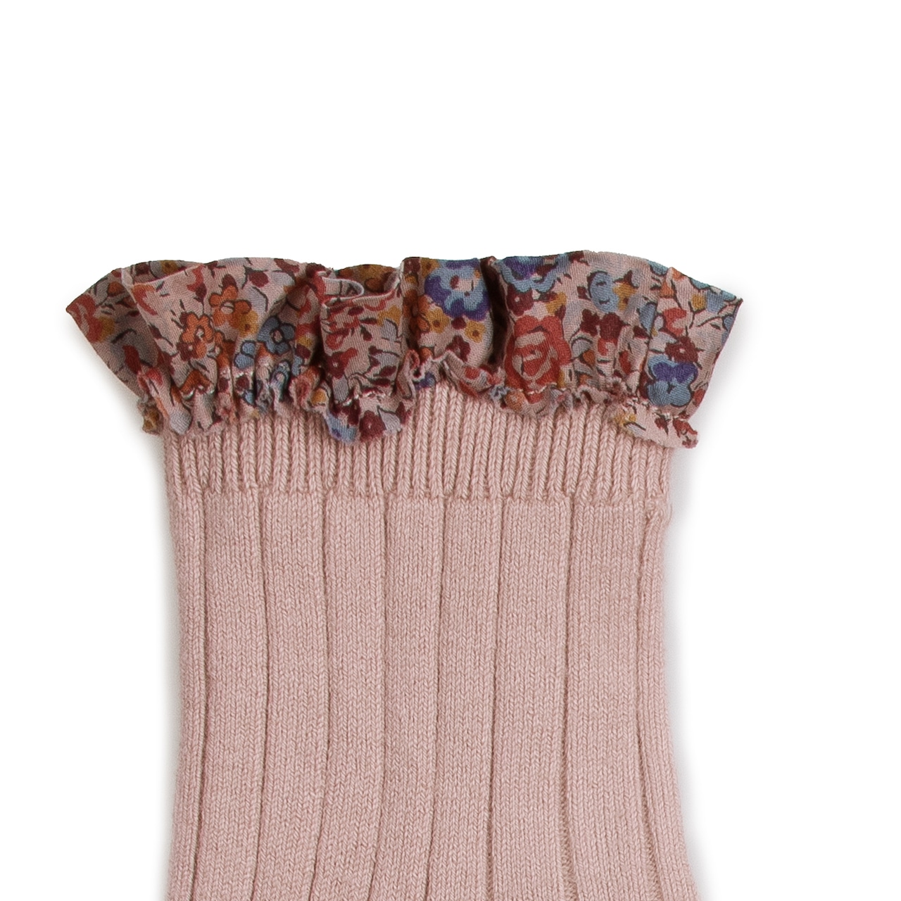 【Collégien】Charlotte - Liberty Ribbed Short Socks with Ruffle