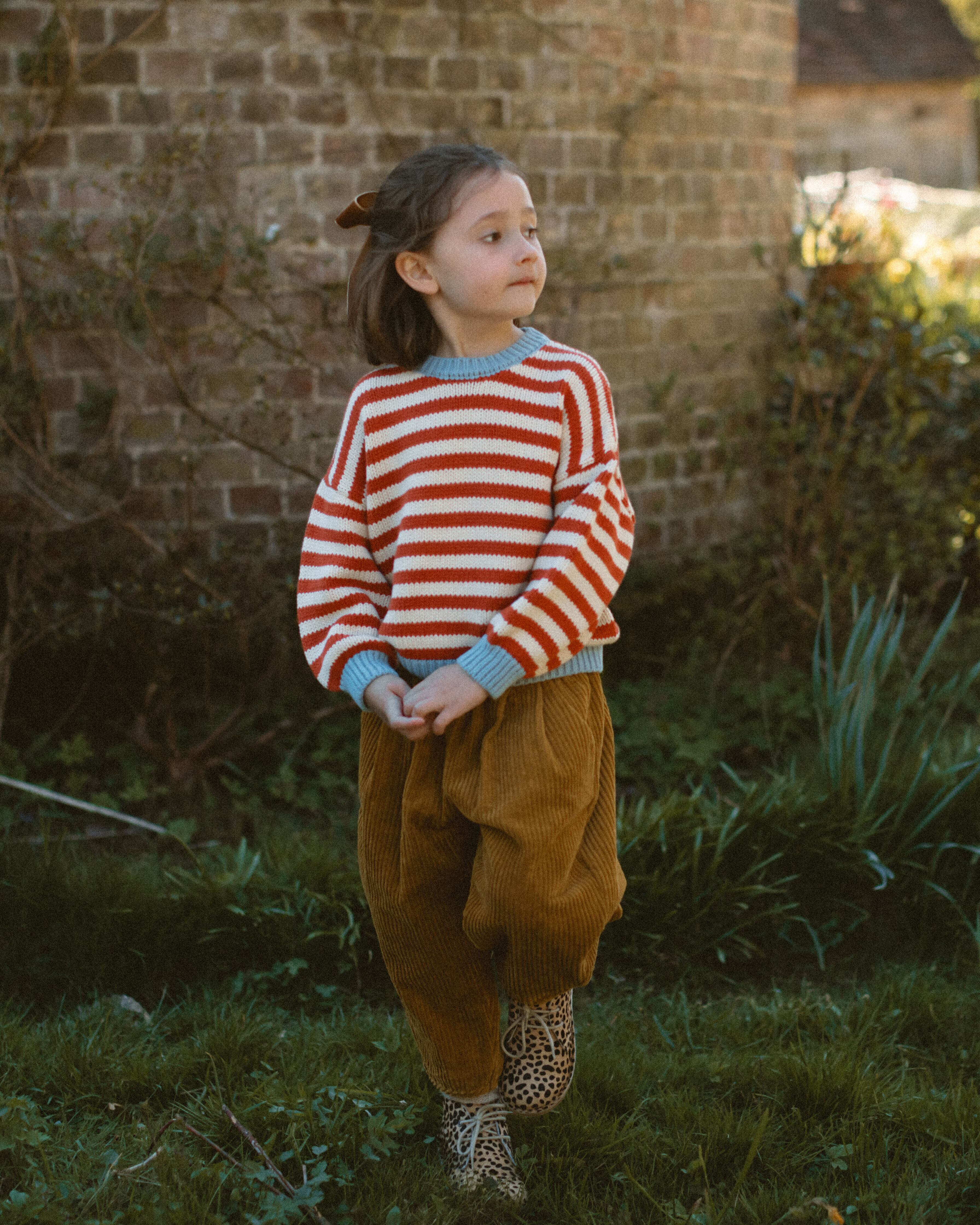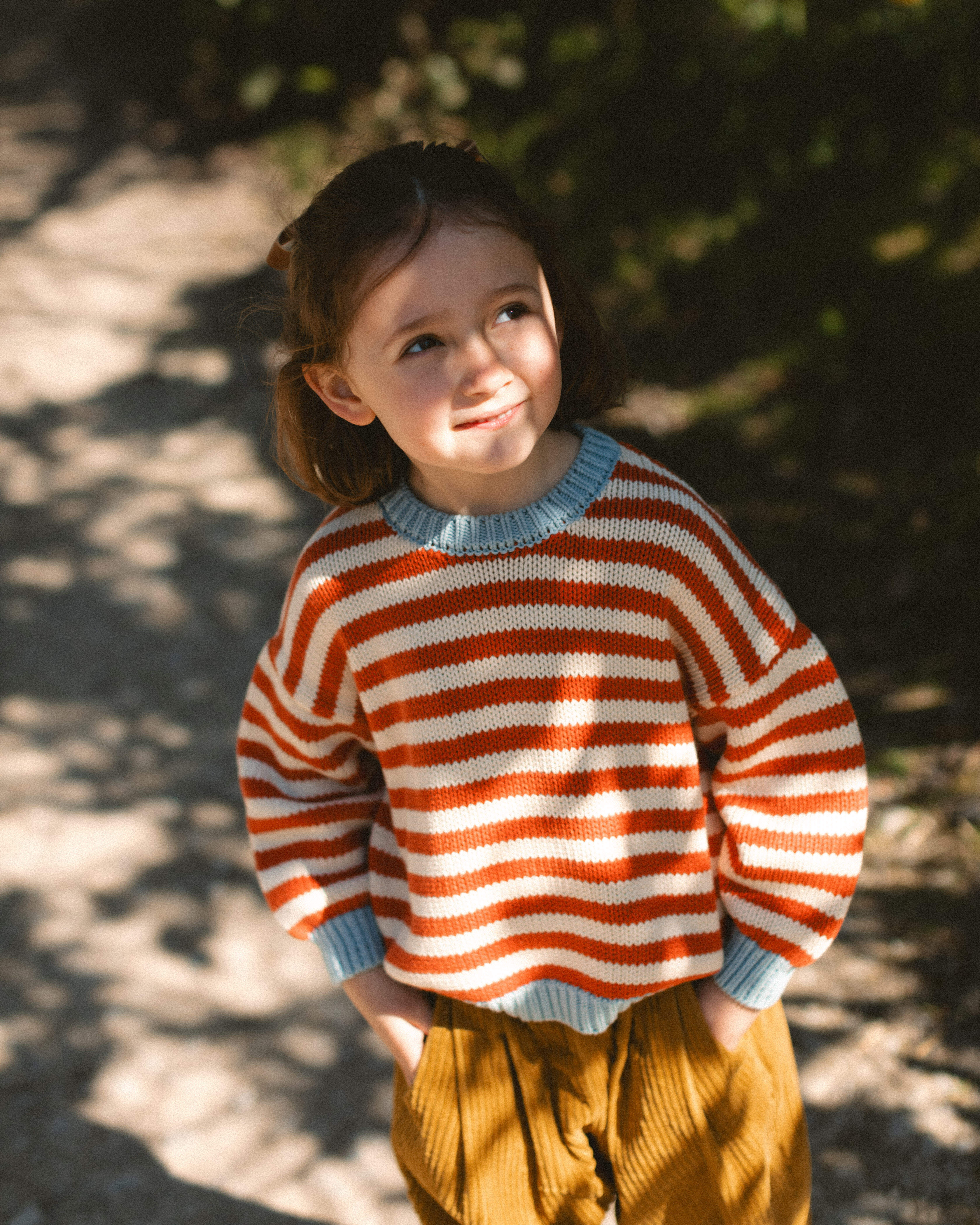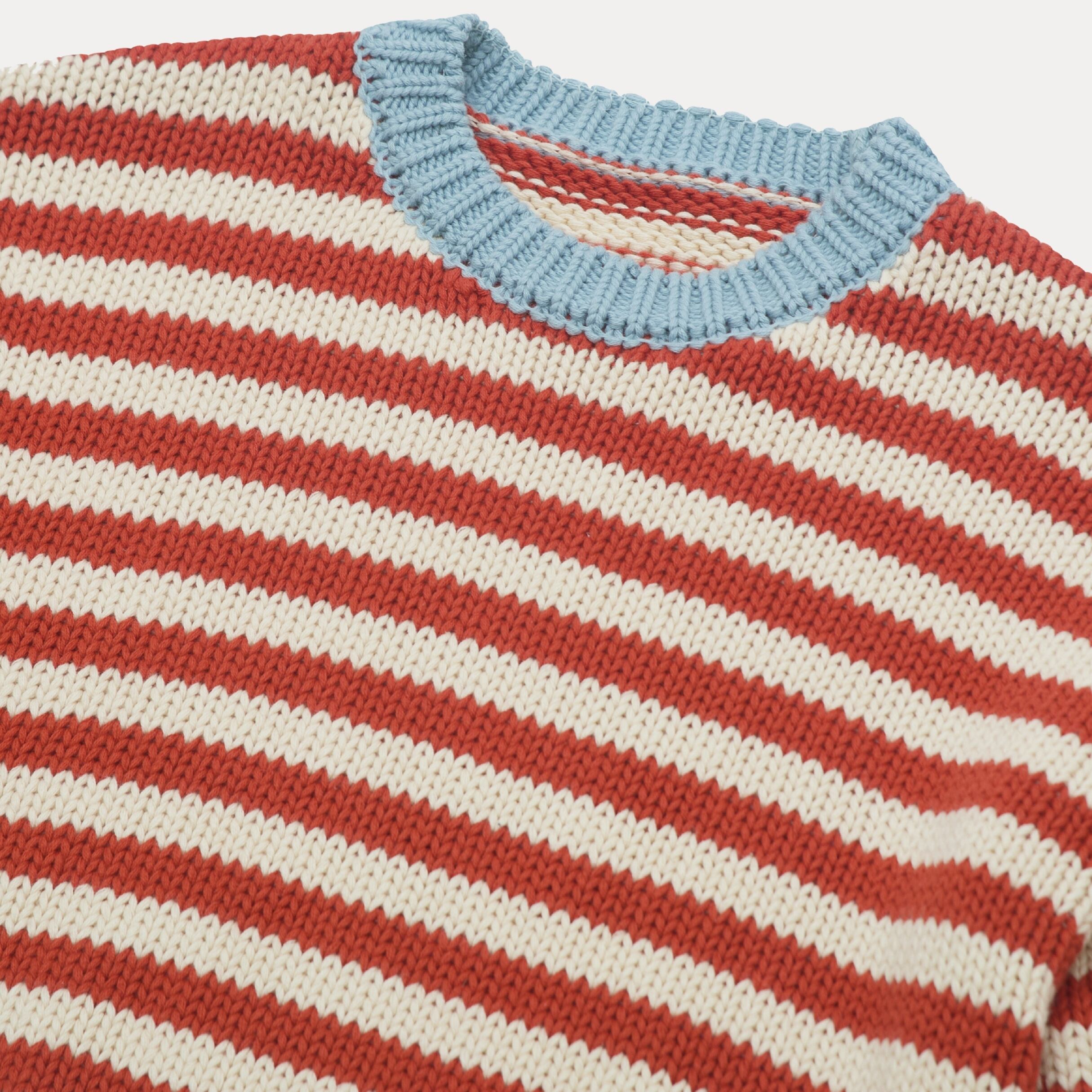 【Nellie Quats】Lennon Jumper - Oat & Poppy Stripe Cotton Knit