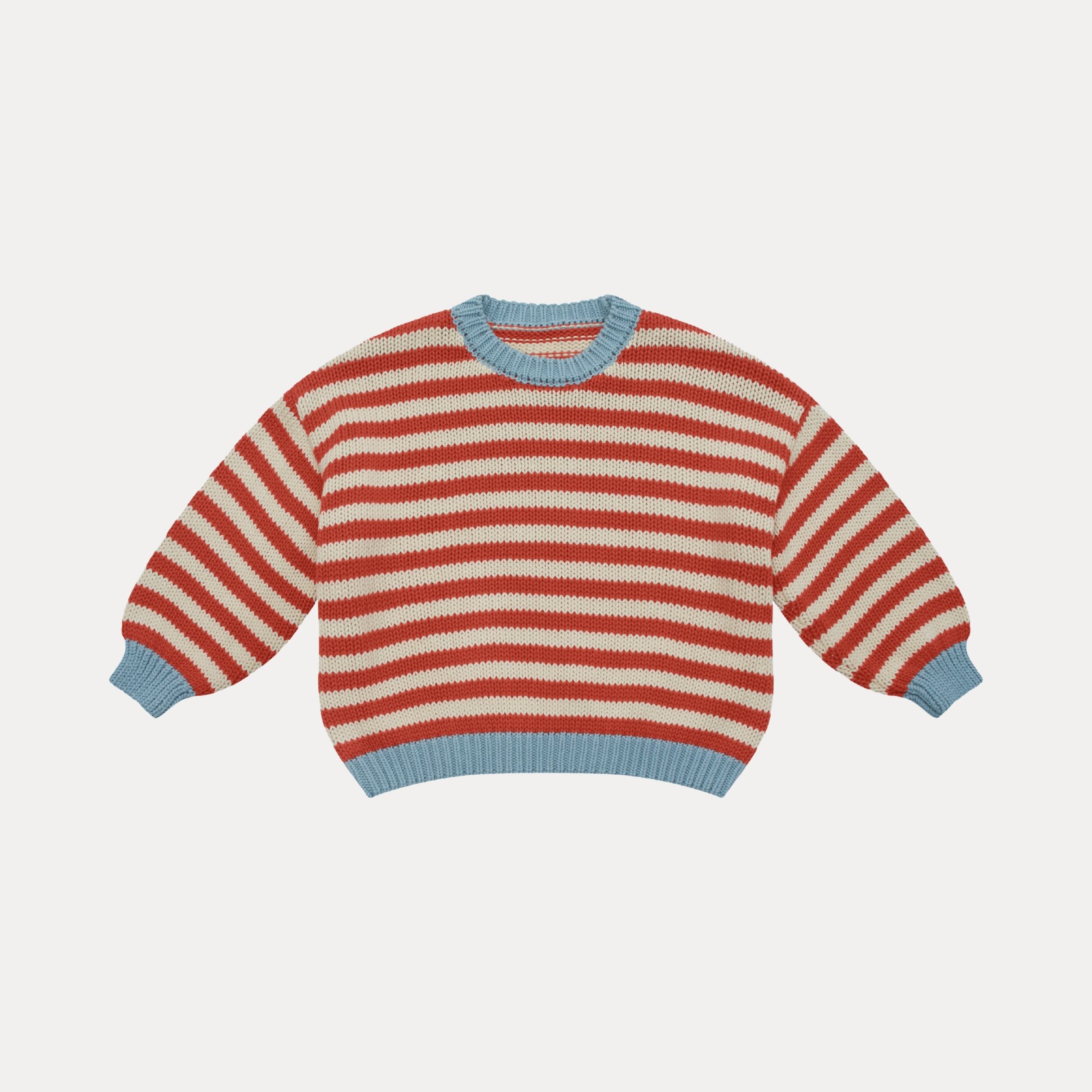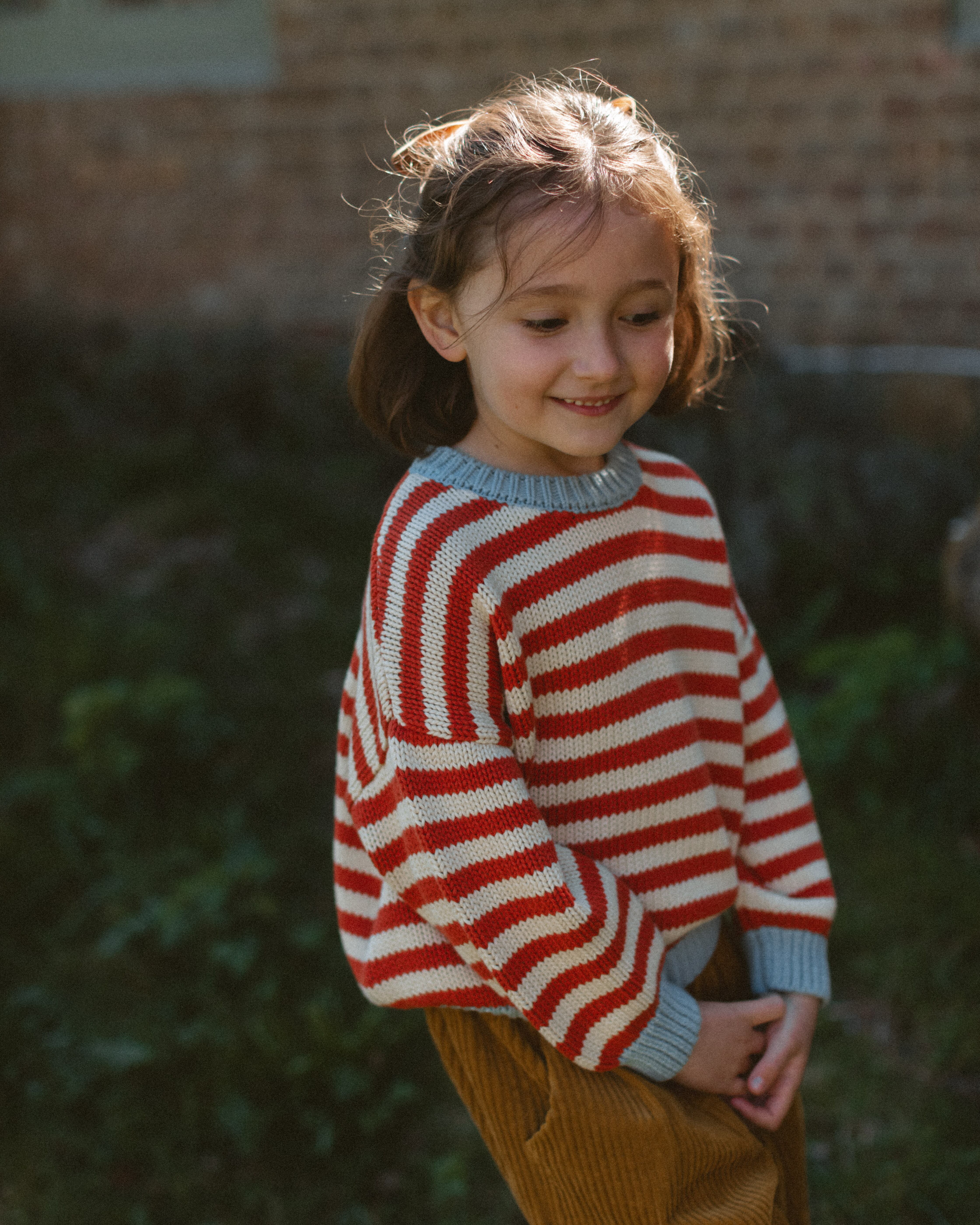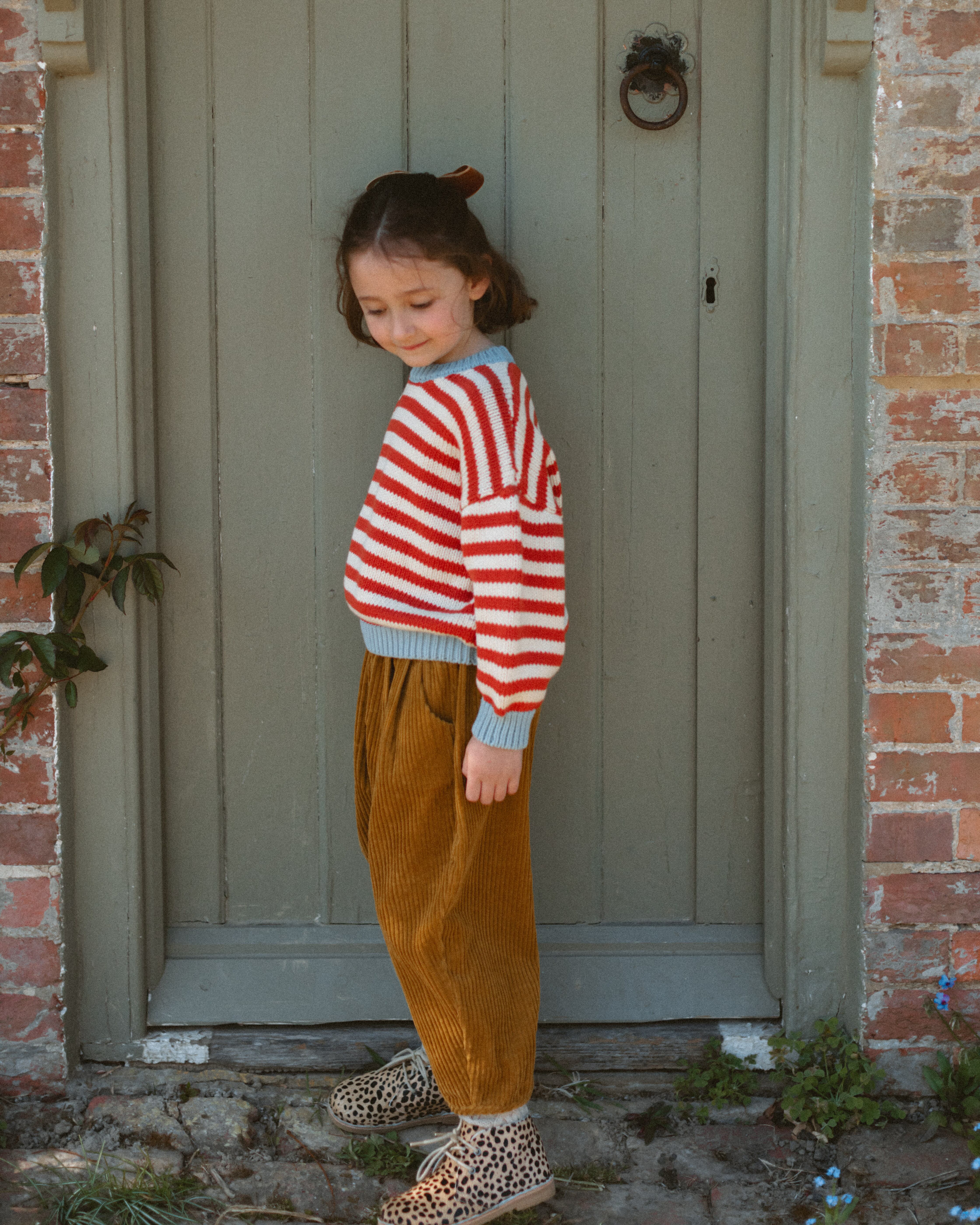 【Nellie Quats】Lennon Jumper - Oat & Poppy Stripe Cotton Knit